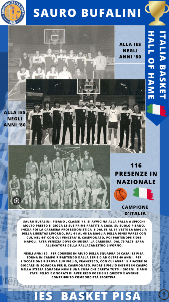 LE FIGURINE IES BASKET PISA Primo appuntamento : SAURO BUFALINI, Campione d’Italia, tre europei, un mondiale e un olimpiade, due coppe dei campioni! Nell ambito del cinquantesimo anno di età della società abbiamo pensato di raccontare la storia della nostra società , attraverso ricordi ed immagini Di personaggi che hanno […]